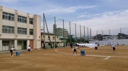 明日の体育大会予行の準備を部活動の部員達が中心となって行っています。