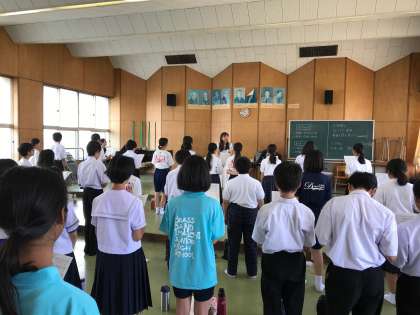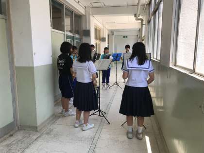 本日吹奏楽部は、8月16日(金)に行われる「たそがれコンサート」の合同練習で、東我孫子中学校に来ています。