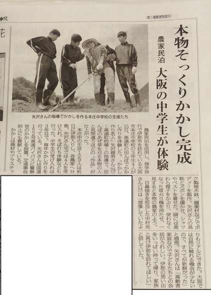 先日、修学旅行でお世話になった宿泊先が、長野新聞に掲載されました。
