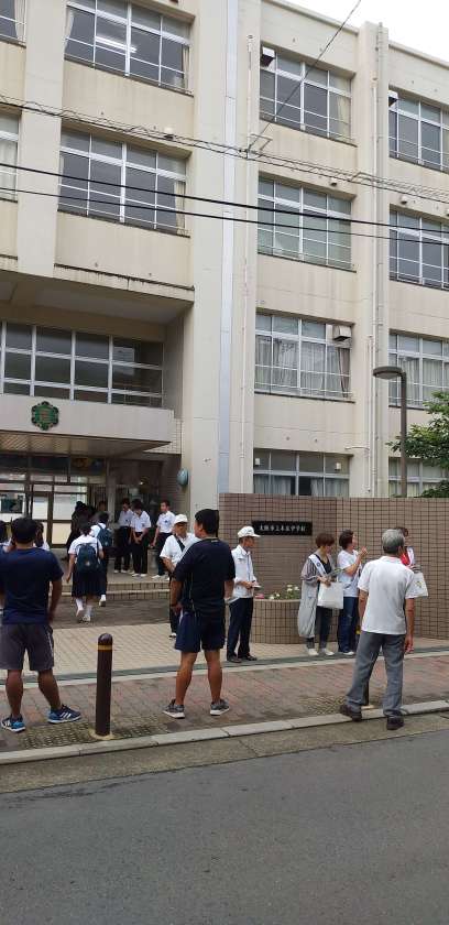 日頃から地域の方々には様々な形で見守ってくださっていますが、今日は特に正門で朝の挨拶運動をしてくださいました。