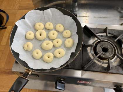 豆腐の水分だけで練った生地は思ったよりもベタベタしていて丸めるのが難しかったです。