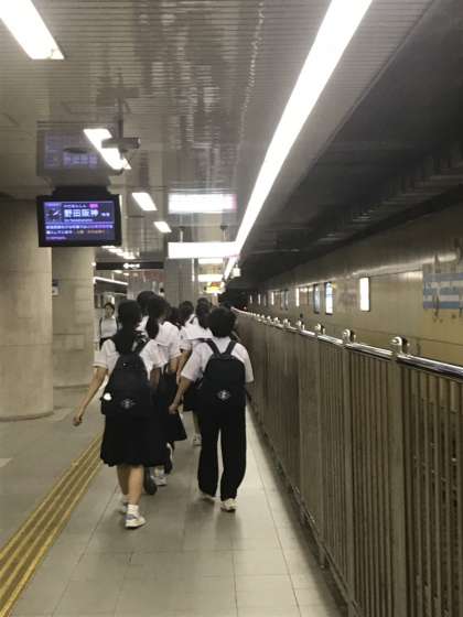 本日、八尾プリズムホールで行われます吹奏楽コンクールへ向けて、出発していく吹奏楽部員です。