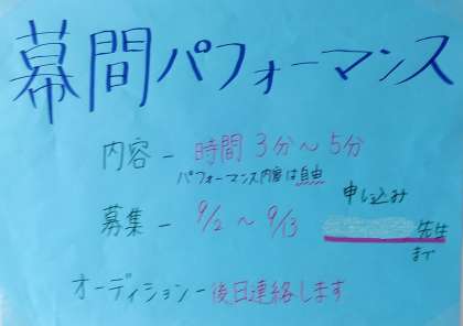 9月3日(火) 各フロアに掲示しているポスターです。 文化発表会への準備が始まっています。
