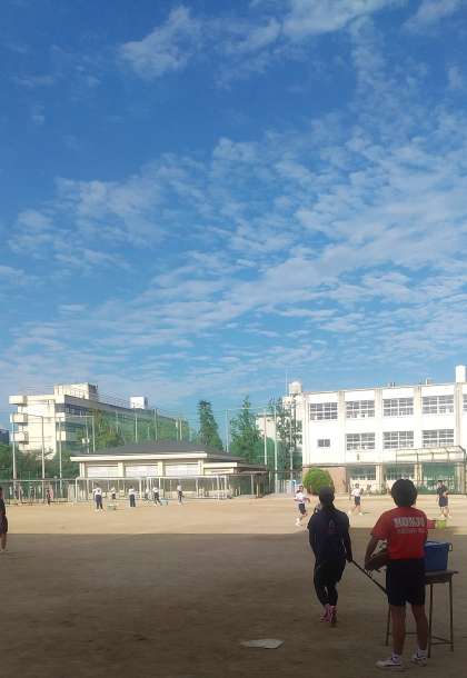 早朝からグラウンドでは、ソフトボール部や野球部、バレーボール部が練習をしています。