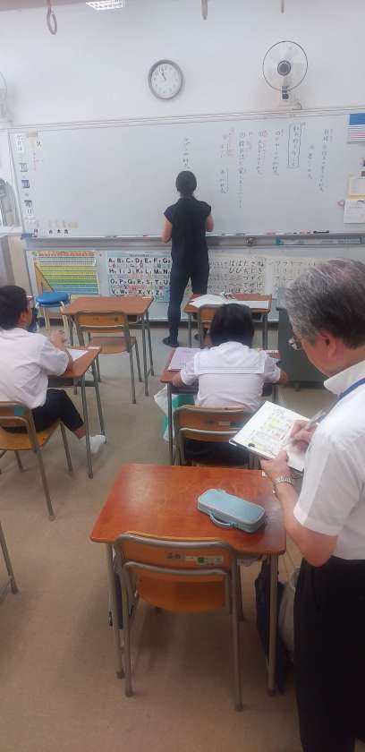 こちらにも指導員の先生が来られ、授業見学していただいています。この後、ご指導ご助言をいただきました。