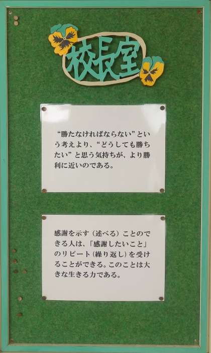 9月13日(金) 校長室前の言葉が変わりました。 足を止めて見ていく生徒も居ます。