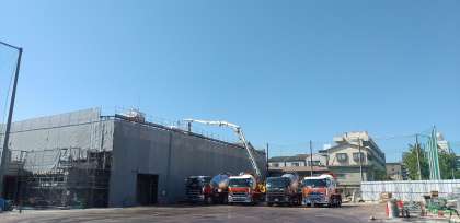 本日、とても沢山のコンクリートミキサー車が来ています。