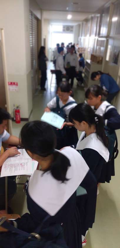 各事業所へのご挨拶を終え、報告をしに帰校する生徒達です。