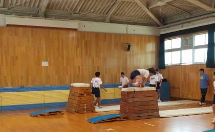台上前転や頭羽跳びを学習していきます。