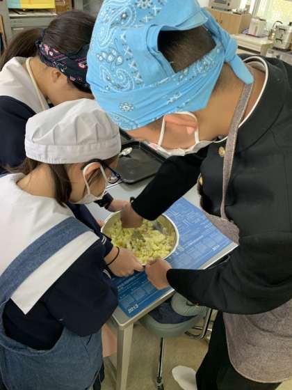 先日収穫したサツマイモを使って調理実習をしています。