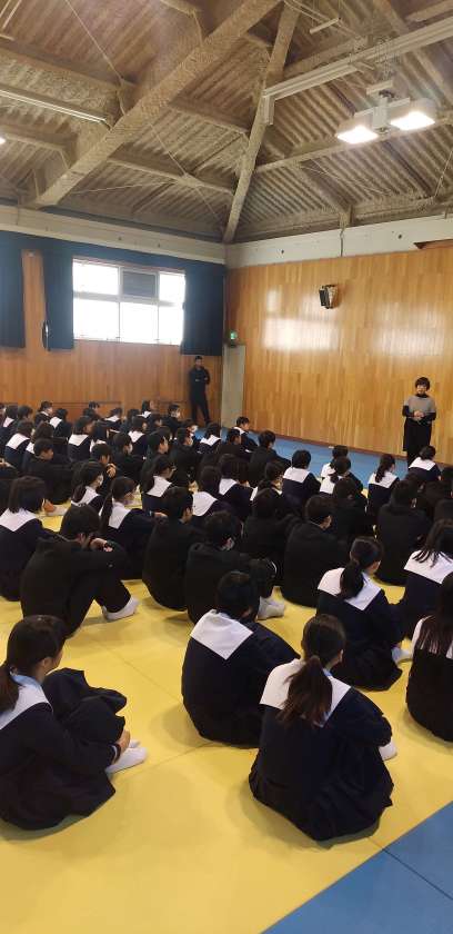 さらに掘り下げて知って欲しいことや考えて欲しいことなど、一歩進んだ「平和学習」として今日の授業に取り組んでうぉしいというお話に、生徒達は真剣に聞き入っていました。