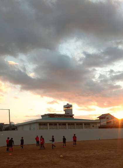ラグビー部は何度も何度もコンビネーションの確認をしています。
