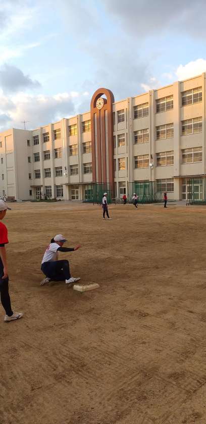ソフトボール部はピッチング練習や滑り込みの練習をしています。
