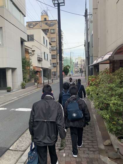 本日、大阪市役所玄関ホールにて開催されます「生徒作品展」を見学に行く生徒達です。