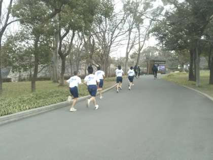 冷たい空気を受けながら生徒の皆さんは日頃の練習を存分に生かし、大阪城公園を走り抜けています。