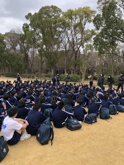 続々とゴールしてくる生徒達。そして皆揃ったところで2学年揃っての閉会。これから徒歩で学校へ向かいます。