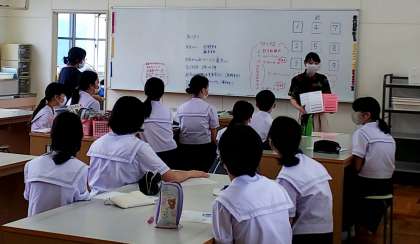 (写真は、吹奏楽部と家庭科部の部活動編成の様子です)
