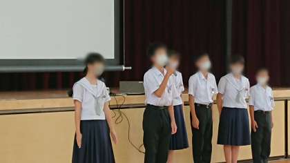 各クラスの代表が、1学期の良かった点と反省点を発表し、学年代表が2学期に向けての抱負を発表しました。