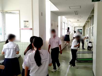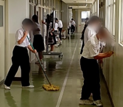 2年生、1年生の清掃の様子です。どの生徒も熱心に取り組んでいます。