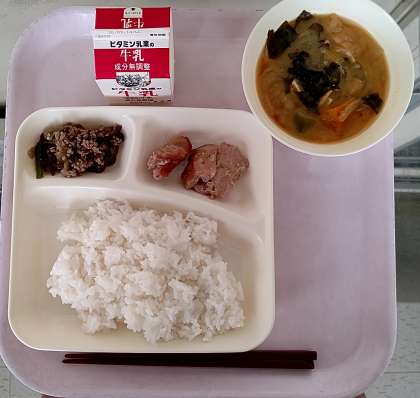 ・ごはん ・牛乳 ・鶏肉のてり焼き ・みそ汁 ・なすのそぼろいため