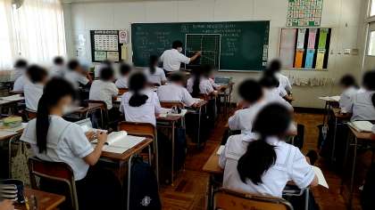 いくつもの一次方程式をそれぞれグラフに書く練習をしています。