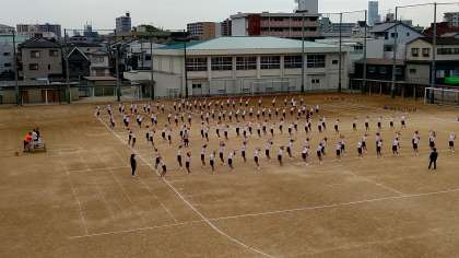 学年での練習も2回目になると、行進でも全体の息もあってきました。ラジオ体操も丁寧にできています。