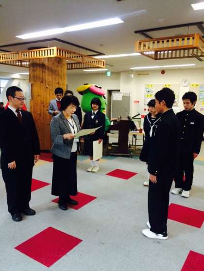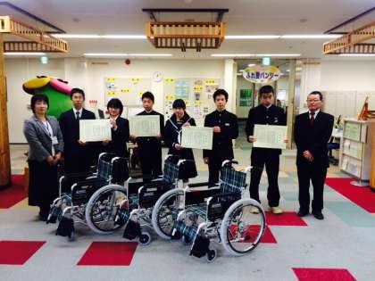 本庄中生徒会は,ワクチンを寄付するためにペットボトルのキャップを集めているのと別に,車いすを寄付するために,代々アルミ缶のプルタブを集めてきました。その結果,東成区4中学校の生徒会合同で車いすを3台寄付することができました。