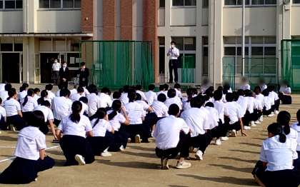 中谷先生からは「力を抜くことで自分のプライドは守れるかもしれない、けれども、全力でやってみることで何か得ることがある。この実習もたくさんの実りのあるものだった。体育大会や学校行事など、学校生活で全力で取り組んでください。」と在校生へメッセージをいただきました。