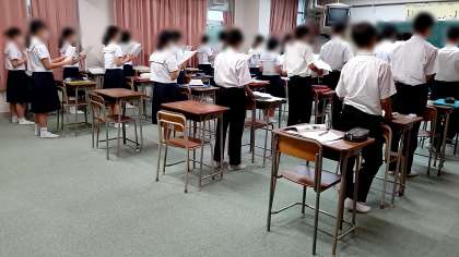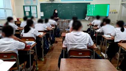 1・2年の関数の復習を経て、関数y=ax2について、斜面を転がる球の1秒ごとの位置を例に学習しています。