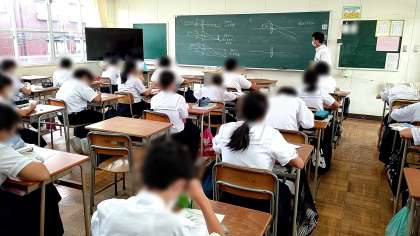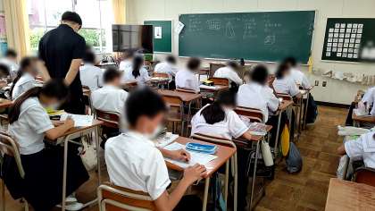 実験後のまとめとして、凸レンズを通った光がどのように像を作るのかなど復習しています。