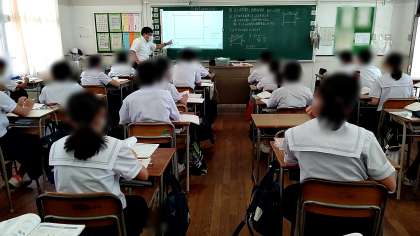 図形上を移動する点がつくる三角形の面積を一次関数で表す問題に挑戦しています。