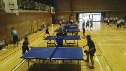 本日、卓球部は男女計24人で東淀中学校に練習試合に来ています。