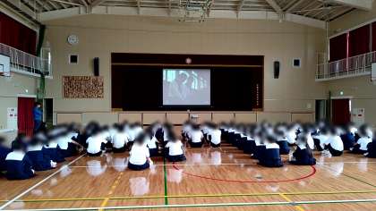 降雨のため、本日予定の防災訓練を延期し、修学旅行前の取り組みとして、平和学習を行っています。