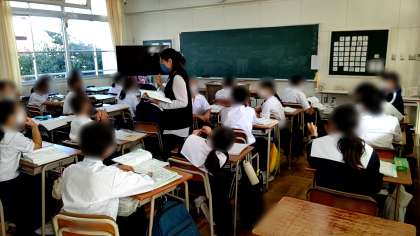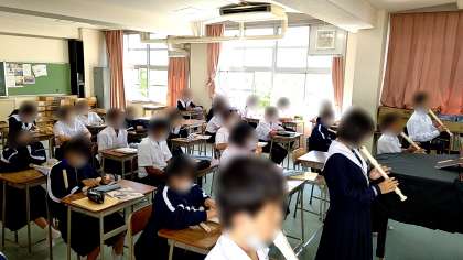 リコーダーで順番に「カントリーロード」の演奏練習を行っています。