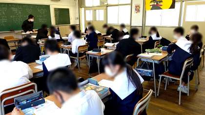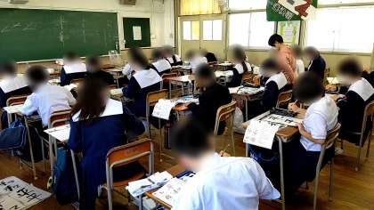 1次方程式の計算問題をたくさん解いています。ペアで教え合ったり、計算の仕方を確認したりしながら学習しています。