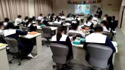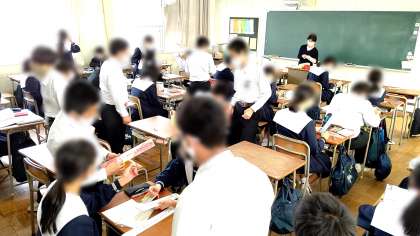 一人ずつ俳句を短冊に書いています。完成したものを互いに見せあったりしています。