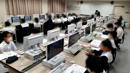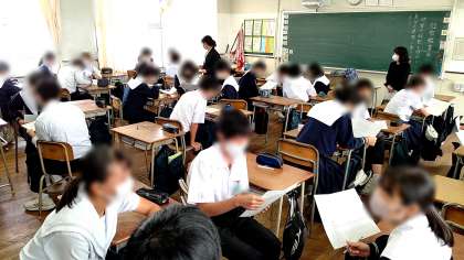 クラスの生徒一人一人が詠んだ短歌を鑑賞し、互いに意見交換をしています。