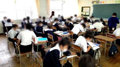 既習の英文法there is/areを使って、ペアで音読練習をしています。