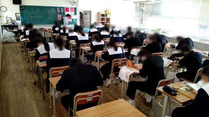 プリント問題を使って、いろいろな熟語をその成り立ちからそれぞれの種類に分類する練習をしています。