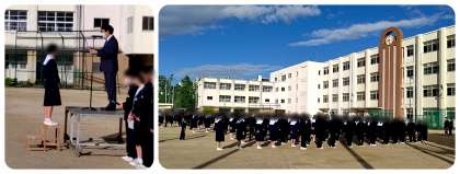 美術部の優秀賞、バレーボール部の準優勝の表彰を行いました。また、生徒会選挙で空席になっていた副会長が決まり、就任演説も行いました。