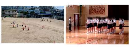 男子はサッカーを、女子はバレーボールのトスなどのテストを行っています。