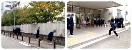 毎朝美化委員が正門やその周辺の清掃を行ってくれています。落ち葉の多いこの時期は本当に助かります。