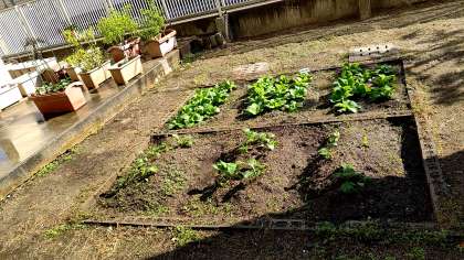 菜園にて、今度は冬の野菜の育成に取り組んでいます。