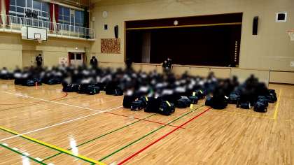 集合時間になり、間もなく出発式を始めます。例年と同じ確認に加えて今年は全員の健康観察を入念に行っているため、始めるまでに少し時間がかかっています。