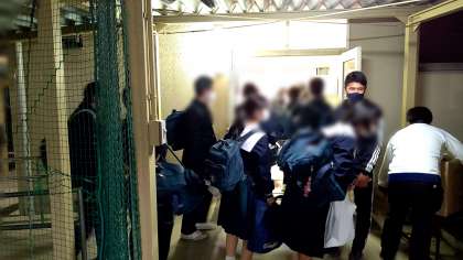 無事に3年生が帰ってきました。これから格技室にて帰校式を行います。