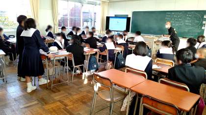 疑問詞を使った疑問文を使ってペアで質疑応答しています。瞬時に質問し答えるスピードが求められます。