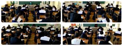 どのクラスも先週行われた期末テストの結果が返却されました。よくあった間違いのポイントや復習するところなどの解説を受けています。