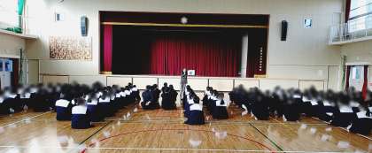 ここからが正念場の3年生へ向けて、学年の先生より漢字を使ったお話がありました。心や生活を「乱」さないように、3つの「えん」(縁、円、援)を大事にしようというお話でした。