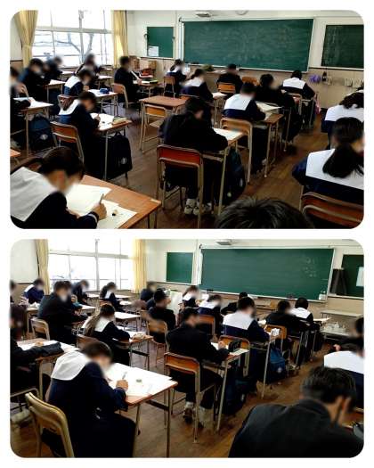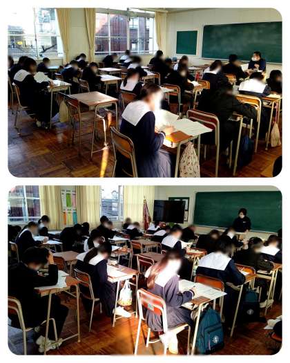 6限に学年全体でチャレンジテストへ向けて、テスト形式の実践的な練習を行っています。