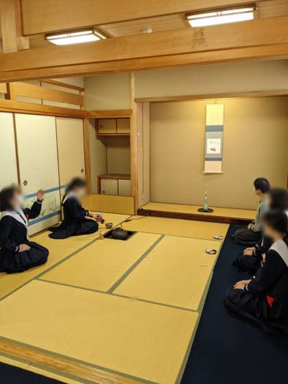 お茶の先生をお招きして今年初のお稽古の様子です。初釜はできませんが、感染予防のため個包装の花びら餅と干支の干菓子を各自で頂いたり、ご自服でお茶をたてたりいつも以上に気をつけながら活動しています。